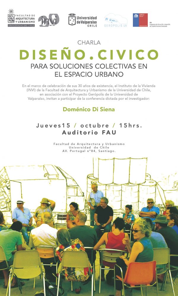 Como parte de la celebración de los 30 años del INVI, junto al Proyecto Gerópolis de la Universidad de Valparaíso deseamos invitar a participar de la conferencia «Diseño cívico para soluciones colectivas en el espacio urbano», que será dictada por Doménico Di Siena el 15 de octubre a las 15.00 hrs en el auditorio FAU.…